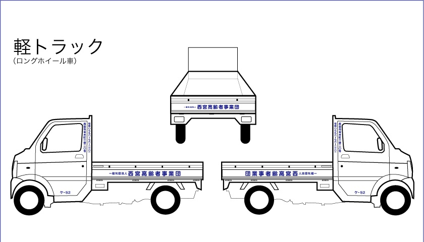 トラック、ワゴン、バスなどの車に、社名やロゴマークを、貼ります。 イメージ資料で、貼る前に確認して頂きます。 (全面に貼る、カーラッピングは出来かねます)